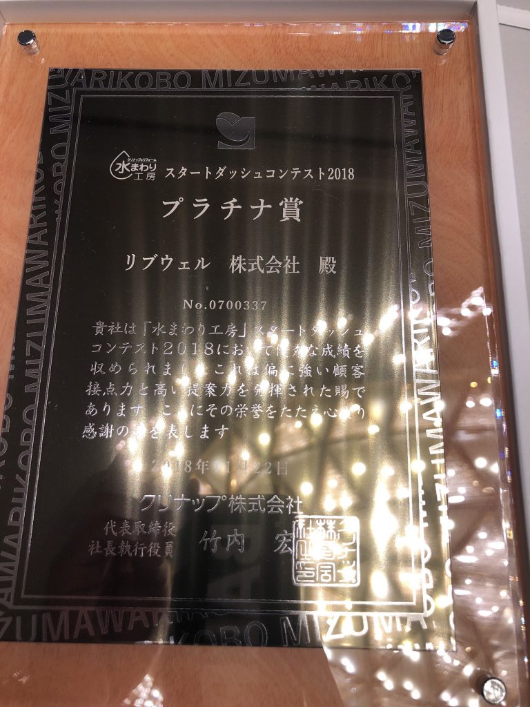 今年はクリナップさんの水まわり工房情報交換会においてスタートダッシュコンテストという販売コンテストで『プラチナ賞』を頂きました。